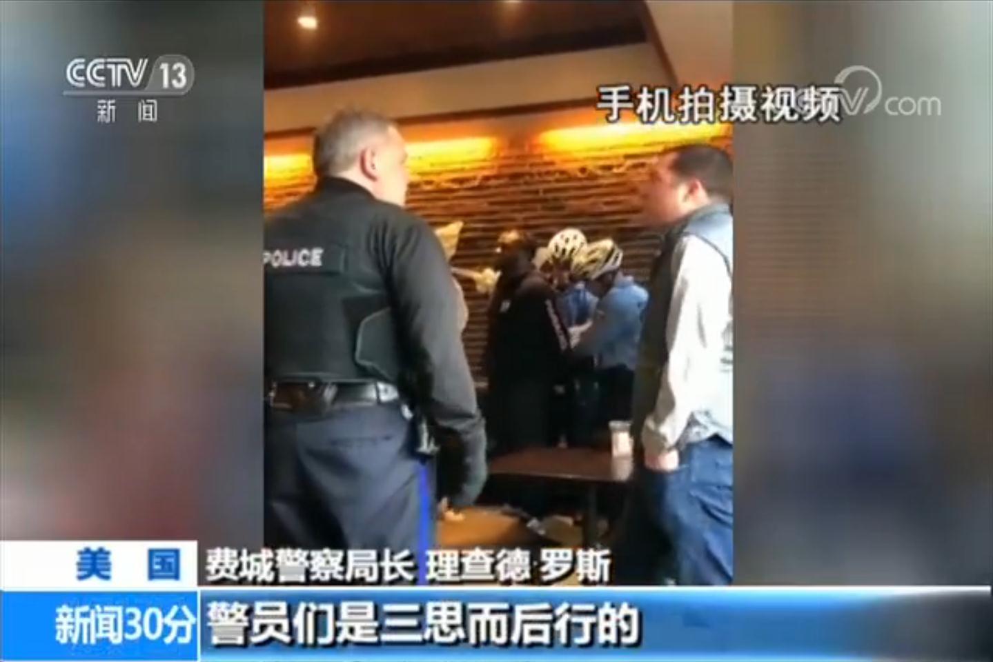 星巴克咖啡连锁店 两名黑人男子突然遭白人警察逮捕